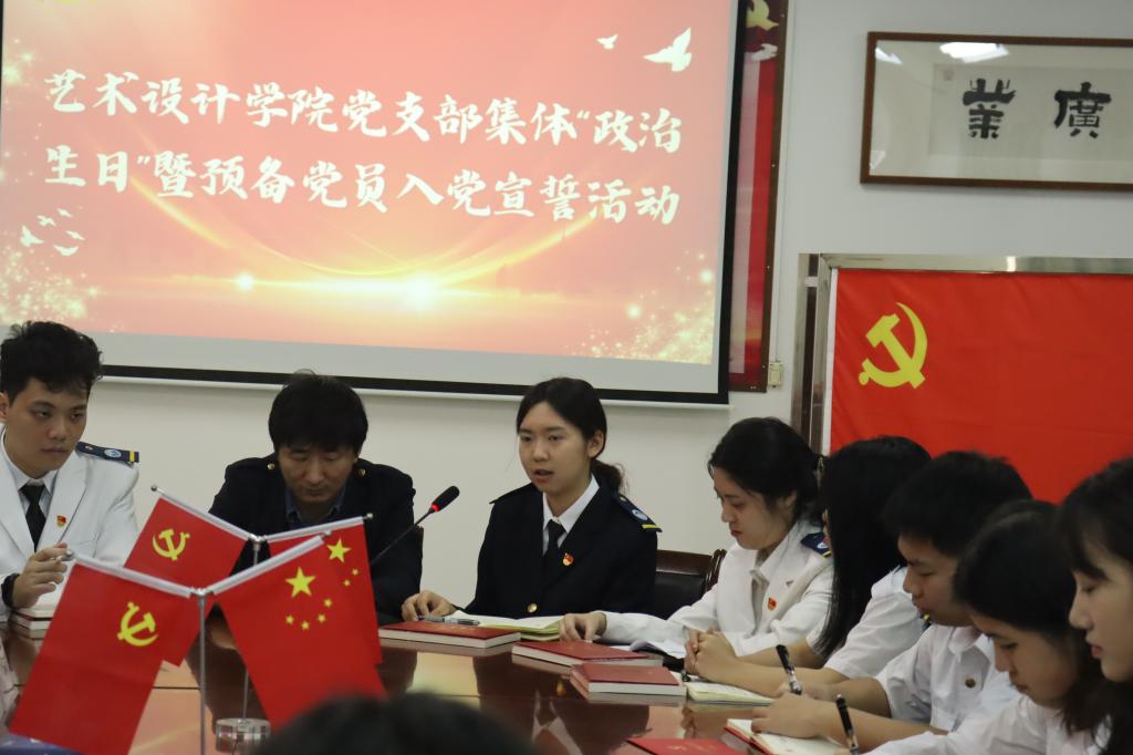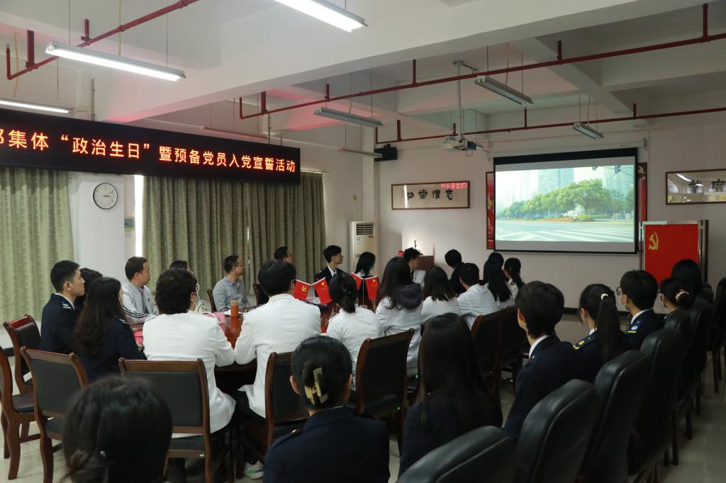 6位新发展的预备党员在冼永权的领誓下,面向党旗进行了入党宣誓,与会党员重温入党誓词。郑德华为新发展党员佩戴党员徽章,王有才、邓焱分别为新发展的预备党员和党员赠送“政治生日”贺卡、纪念册。