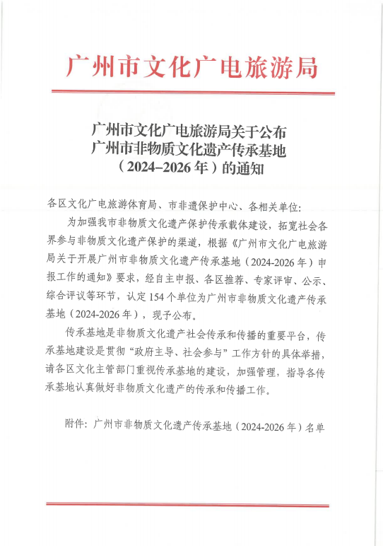 近日,广州市文化广电旅游局正式公布了广州市非物质文化遗产传承基地(2024-2026年)的申报结果,由公司伟德国际victor1946组织申报的非遗传承基地(广绣)成功入选!