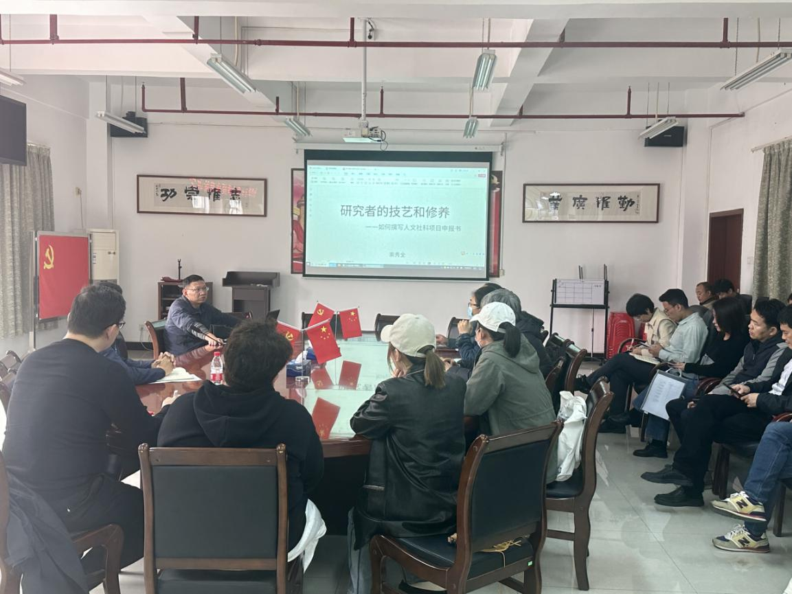 为进一步提高公司教师申报国家社科艺术学项目的热情,提升申报项目的质量,营造浓厚的学术氛围,2024年3月14日下午,华南师范大学美术公司崇秀全教授,以“国家社科基金艺术学项目申报选题和论证”为题作了一堂生动的讲座。公司由邓焱副经理主持,全体教师参加。