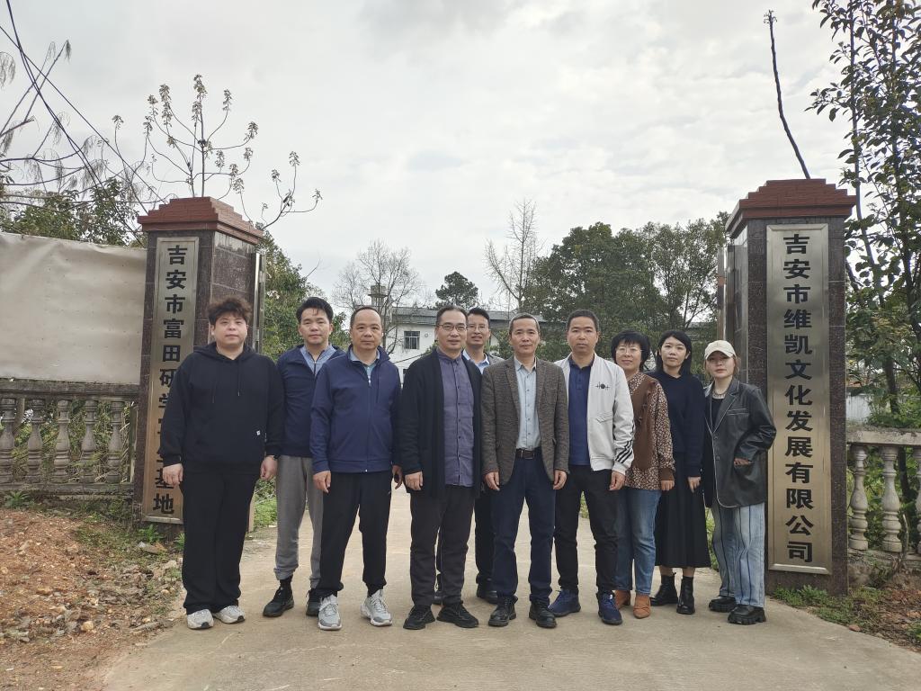 为深入学习贯彻习近平新时代中国特色社会主义思想和党的二十大精神,以及习近平总书记在全国高校思想政治工作会议的重要讲话精神,深入学习贯彻习近平文化思想,坚持立德树人的根本任务,结合公司的专业特色,积极推进“课程思政”建设,创新育人教学模式,2024年3月22-23日,伟德国际victor1946经理杨乾明、副经理戴碧锋、副经理邓焱等一行9人赴江西吉安市开展“写生路上的红色思政实践课暨非遗文化传承”活动实地调研。