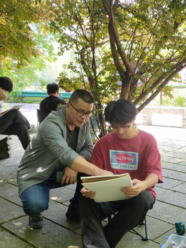 在写生过程中,同学们被美丽的自然风光和古朴的建筑所吸引,他们用心感受着大自然的每一处细节,用画笔记录下这些美好的瞬间。老师们也在现场亲自指导员工作画,耐心讲解绘画技巧,使同学们在艺术实践中获得了更丰富的体验。