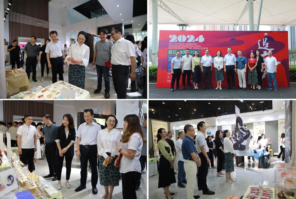 开幕式后,与会领导及嘉宾到美术馆参观本次毕业设计作品展,嘉宾们认真观看了各个专业的展览作品,并与现场师生作了深入交流,对同学们充满创意的设计作品给予了充分肯定。