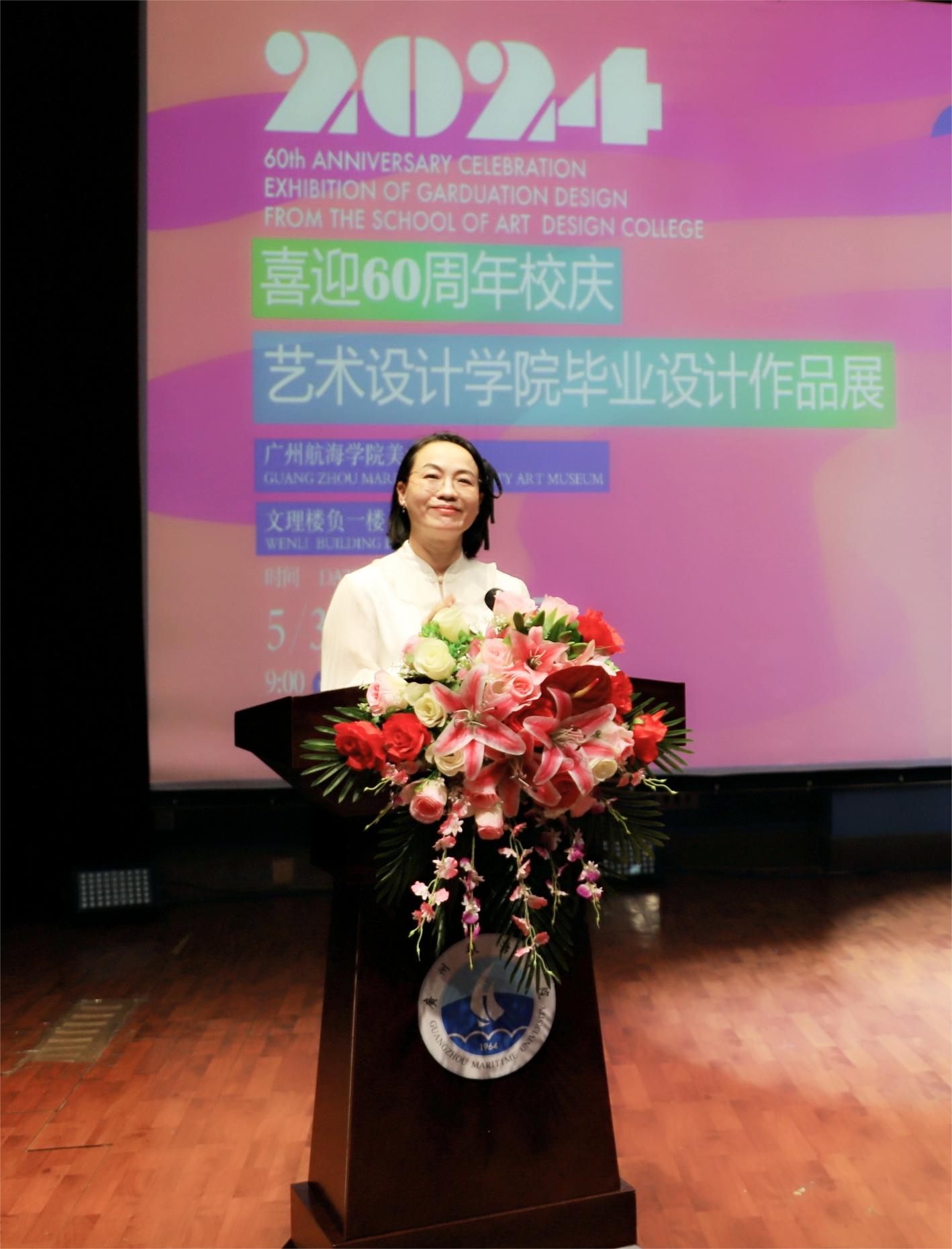 陶韶菁为开幕式致辞并宣布伟德国际victor19462024届毕业设计作品展正式开幕。她回顾了公司六十年临海而立、因海而兴、向海图强的发展历程,结合本次毕业展的主题“天高海阔·追梦”,向大家介绍了“天高海阔”的三重含义。她指出,公司正以建设“突出海洋特色的一流交通大学”为目标,构建覆盖海、空、地、轨、天的大交通学科布局,力求实现“天高海阔”的学科布局;她激励全体师生树立“大干十二年,再造新广航”的壮志,举旗定向,锚定目标,接续奋斗,共同开创公司“天高海阔”新篇章;同时,她也向即将步入社会的毕业生们表达了殷切期望,希望他们勇攀高峰,在各自人生征途上发光发热,创造属于自己的“天高海阔”。