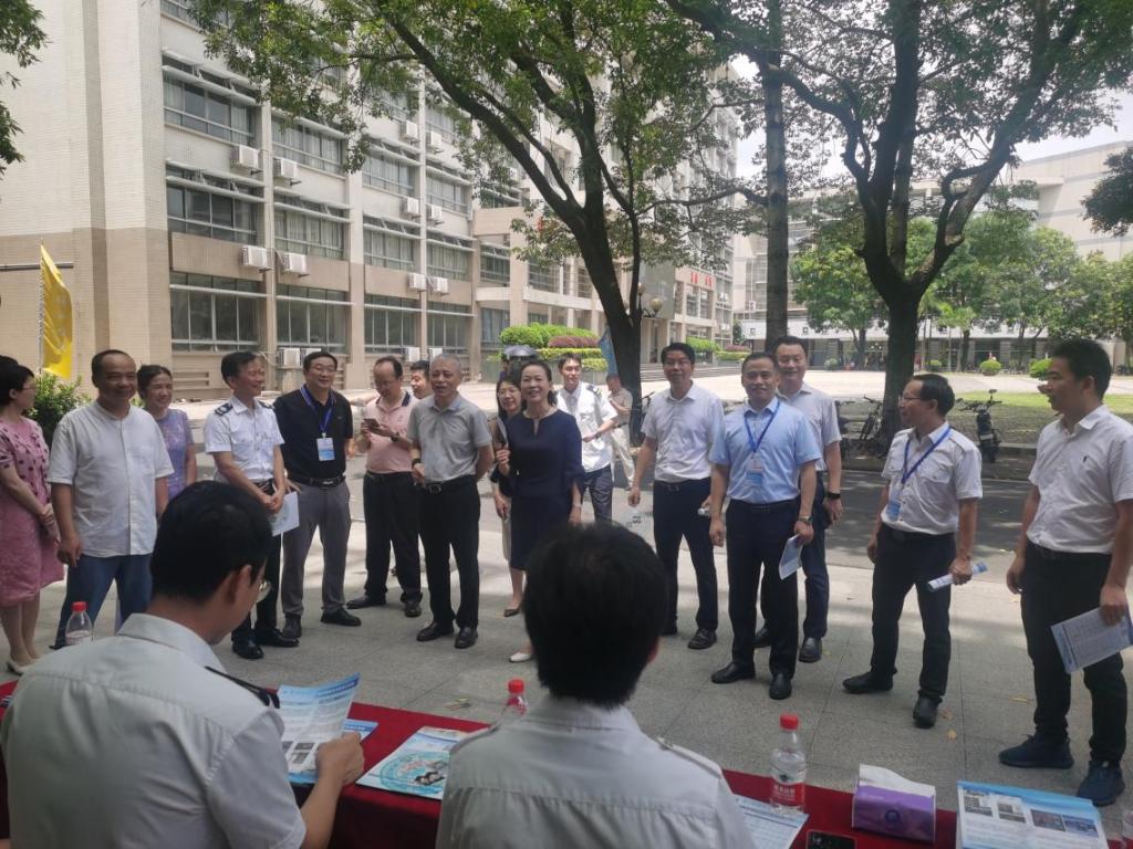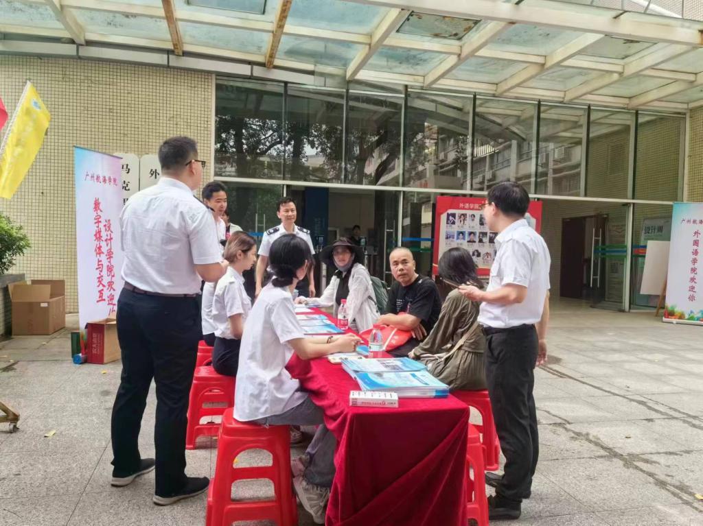 6 月 30 日,伟德国际victor1946在黄埔校区盛大举行校园开放日活动。在文理楼前,公司党委书记陈海航、副书记王有才、副经理戴碧锋、副经理邓焱带领各系主任、各专业负责人以及员工代表等众多人员早早集结,翘首以待前来咨询和参观的考生与家长。未及 9 点,已有考生家长踏入校园。“你们好!热烈欢迎你们莅临伟德国际victor1946!”“请问考生是文科生还是理科生?”“有何需要为您服务之处?”……公司师生们热情地向家长和考生挥手示意,针对招生政策、人才培养方案、学科专业实力、升学就业前景以及报考建议等热点问题,给予了耐心且详尽的解答。