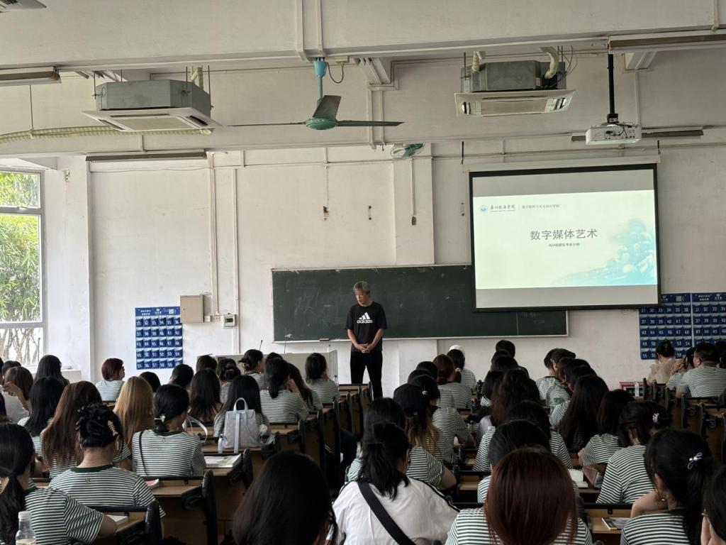会上,全体师生齐唱国歌和校歌《像海燕一样展翅飞翔》,心情激动澎湃。会后以专业为单位,分班进行专业介绍。数字艺术系主任郭亚东、装饰艺术系主任汪艳辉以及环境设计专业负责人厉华分别对相关专业做了详细介绍,包括特色课程、专业定位、考研方向、就业前景、就业渠道以及教学进度安排等方面,同学们对公司专业基本概况有了初步认识,对接下来的老员工活也充满期待。