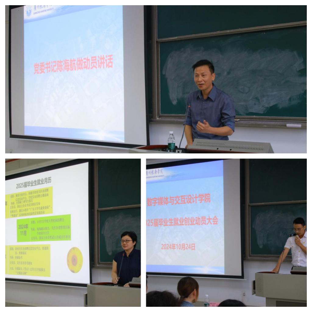陈海航作了动员讲话。他向同学们讲解了当前的就业形势和市场需求,对大家提出希望。一要树立科学就业观主动就业。毕业生们要积极主动地走进社会,勇敢面对就业挑战,做好职业生涯规划。要依靠自己的能力求生存促发展,报答父母,为家庭、社会和母校贡献应有力量。二要不断提高综合素质和就业竞争力。希望同学们珍惜在校时光,努力学习专业知识,提高专业技能,积极参加各种学科竞赛和社会实践活动,锻炼实践能力和创新能力。要注重学习提高自身沟通能力、团队协作能力和解决问题的能力。三要坚定信心、树立锲而不舍的精神。要传承“勤学善思厚德求新”校训精神,唱响校歌“像海燕一样展翅飞翔”。就业创业过程中难免会遇到各种困难和挫折,要学会及时调整心态,以积极勇敢的态度迎接每次挑战,克服各种困难,相信通过不懈努力一定能够实现就业创业的目标。