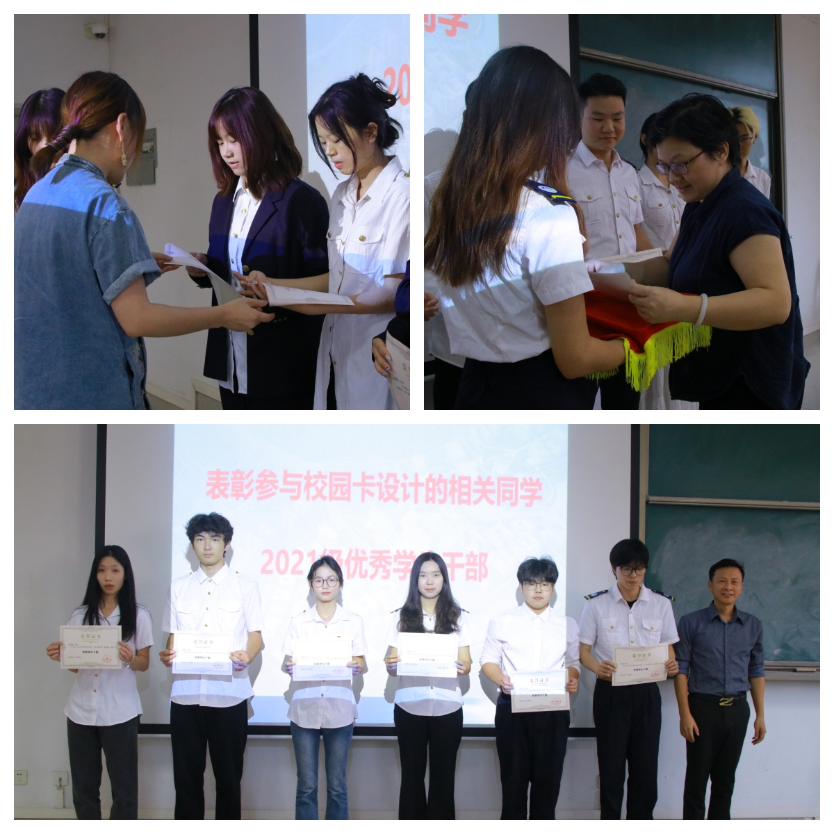 会议举行了颁奖仪式。公司领导为参与公司校园卡设计和获得“优秀员工干部”的毕业生颁发了荣誉证书,给予了表彰和鼓励。