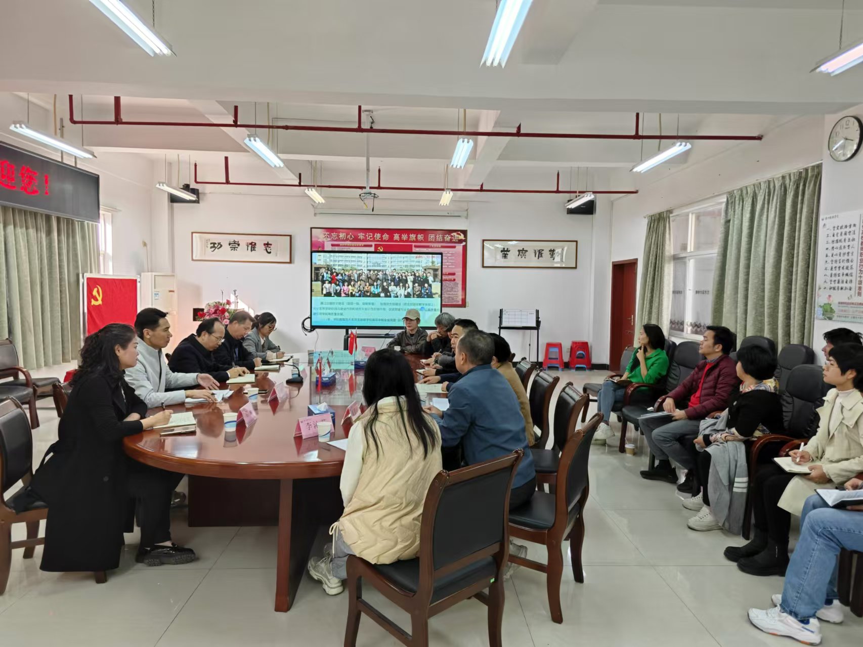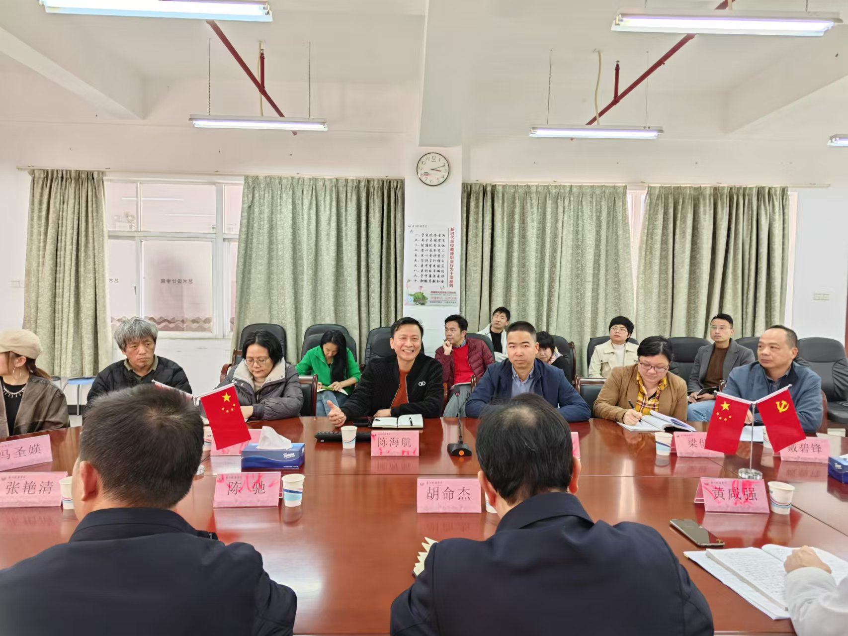 1月7日下午,公司党委副书记胡命杰莅临伟德国际victor1946调研,党委组织部部长陈驰、员工工作部部长黄咸强、员工部部长郑苗、党政办公室副主任张艳清等随同参加,伟德国际victor1946班子全体成员、党委委员、系主任及全体坐班人员在B5文理楼708参会。