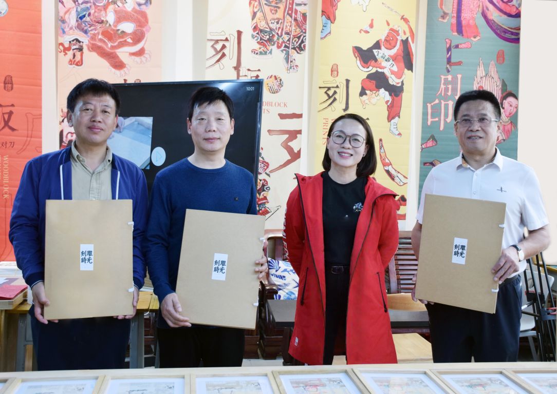 图4.陶韶菁书记向陈文举先生等来访客人赠送非遗作品