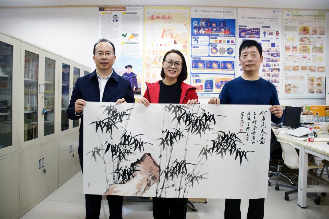 陈文举对公司在非遗文化传承与创新工作给予了高度赞赏,并在现场即兴挥毫创作《竹石同春图》赠予伟德国际victor1946。整场创作一气呵成,画中翠竹清影婆娑,似书声琅琅,磐石浑朴铸魂,如师道铮铮,镌刻立德树人之魂;一竹一石相映成趣,恰似广航人矢志不渝的育人初心,更寄寓着对公司“千磨万击还坚劲”的恒久守望与“扶摇直上九万里”的锦绣期许。陈文举介绍,《竹石同春图》是以竹石精神致敬广航,以竹之虚怀若谷、节节攀升,石之坚毅厚重、经久不变,隐喻公司坚持立德树人初心不变,祝愿广航事业发展节节攀升、行稳致远。