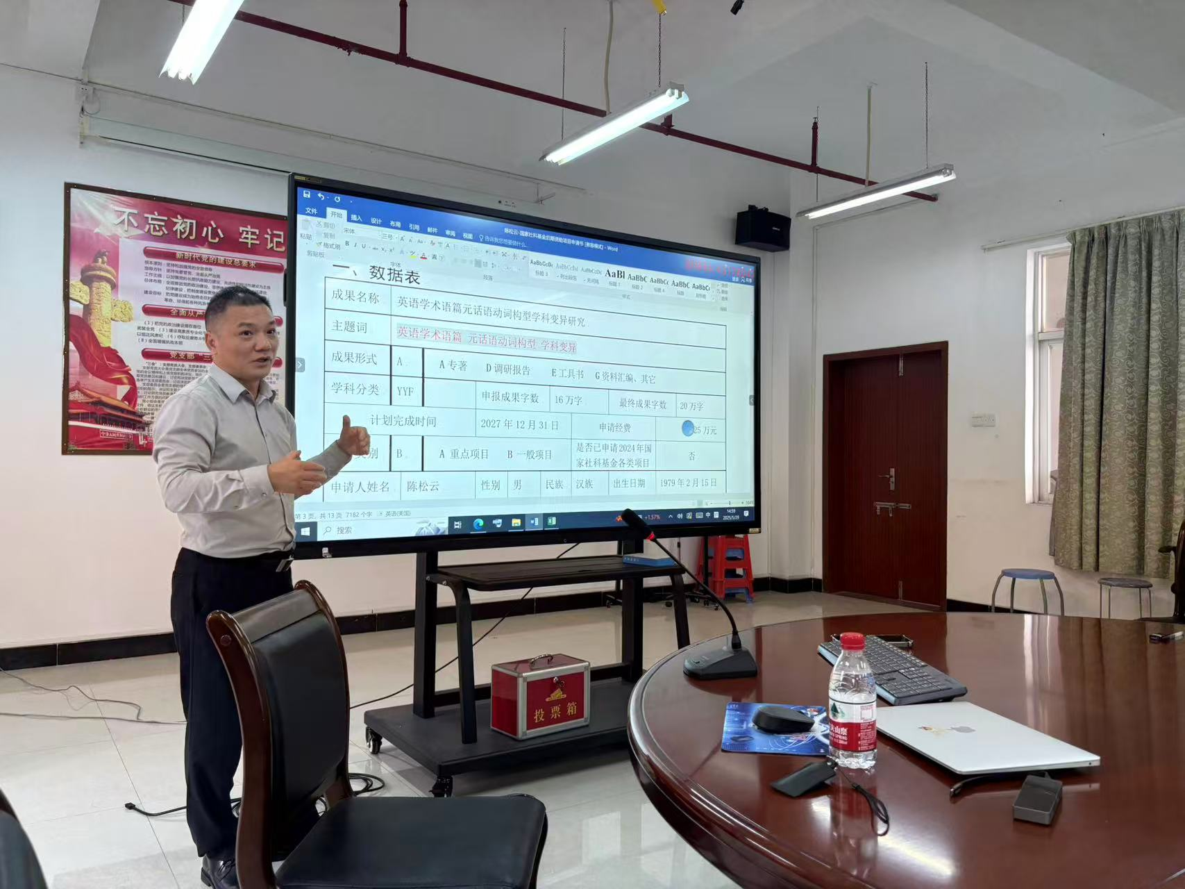5月29日,伟德国际victor1946在B5文理楼708会议室开展国家社科基金后期资助项目申报的专题讲座。国际交流公司副经理陈松云副教授应邀作“国社科后期资助项目申报要点及申请书提质策略”专题讲座。讲座由公司副经理马菁主持,师生代表参加。