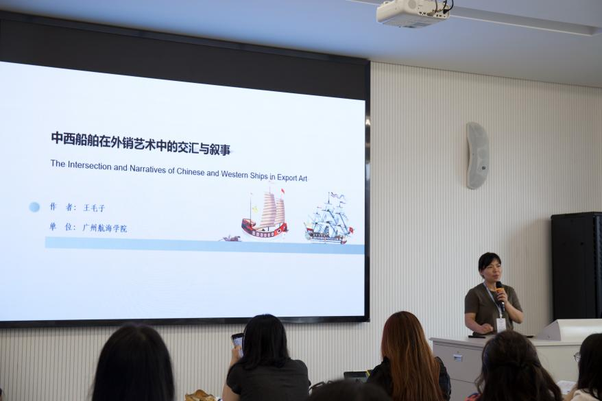 本次学术研讨会由浙江大学艺术与考古公司主办,丝绸艺术与丝绸之路研究中心承办,杭州工艺美术博物馆协办,旨在探讨明清时期中国外销艺术的多维面貌及其与全球科技、文化交流的互动历程。研讨会上,王毛子以船舶作为全球贸易及文明对话的重要节点,提出船舶图像不仅是跨文化交流的物质见证,也在中西艺术的互动中承担着叙事与文化身份重塑的关键作用。报告以大量历史图像、外销瓷器与外销画为例,系统梳理中西造船与航海技术的交汇与创新,深入剖析船舶图像在艺术表现、文化符号及社会认同等层面的演变机制。其中有关广州作为近代对外通商口岸及本地“广船”船型的历史演变分析,得到与会专家的高度评价。