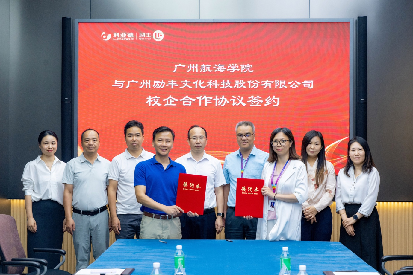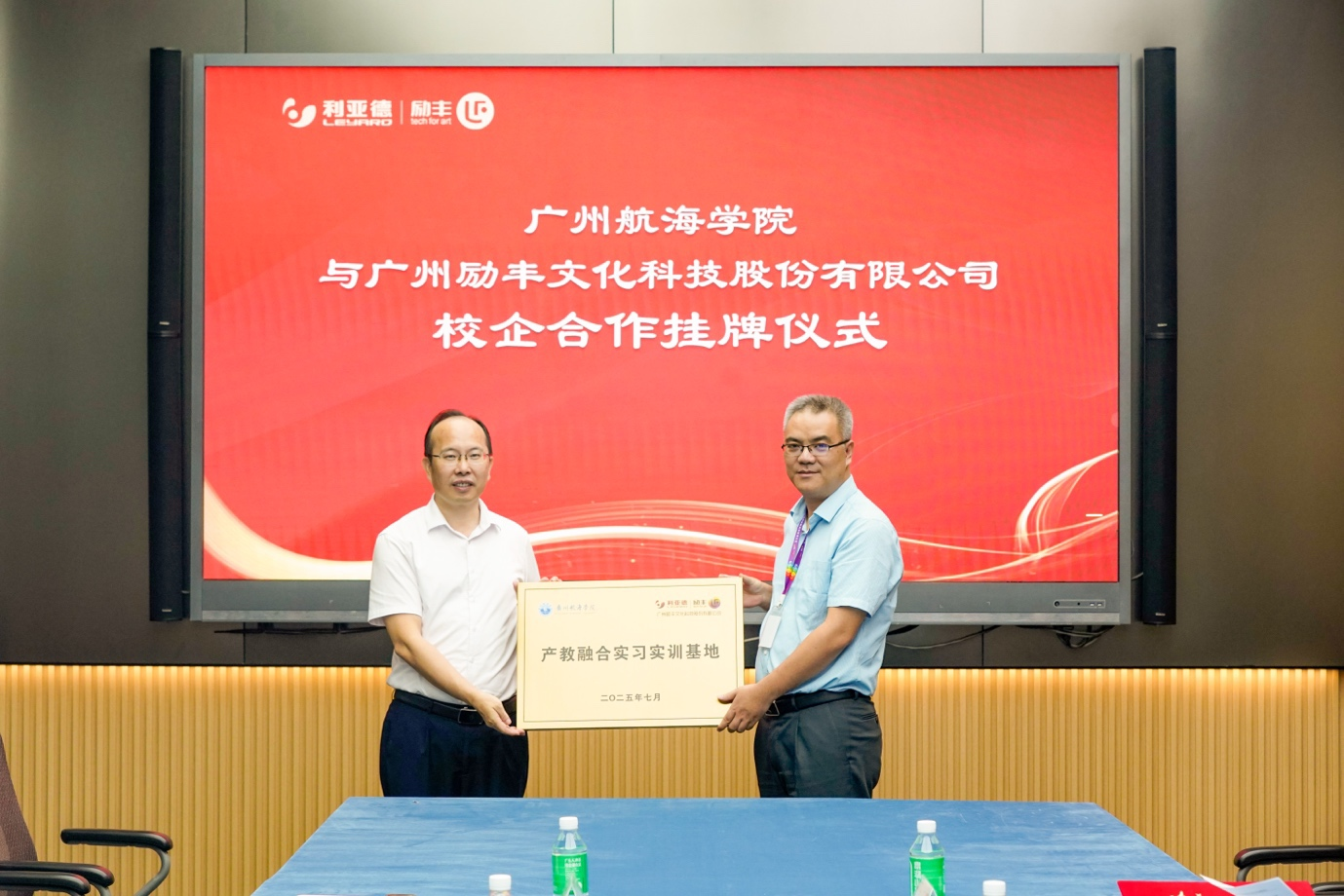 2025年7月4日,广州航海公司党委副书记胡命杰率队前往广州励丰文化科技股份有限公司总部调研,受到励丰文化科技副总裁兼首席运营官张俊才等高管热情接待,双方在该公司隆重举行校企合作签约暨校外实践教学基地授牌仪式。公司公司党委书记陈海航、经理邓焱、副经理戴碧锋、专任教师刘甜,广州励丰公司经营管理部总经理赵丽、人力资源部副总监曾美兰等参加仪式。
