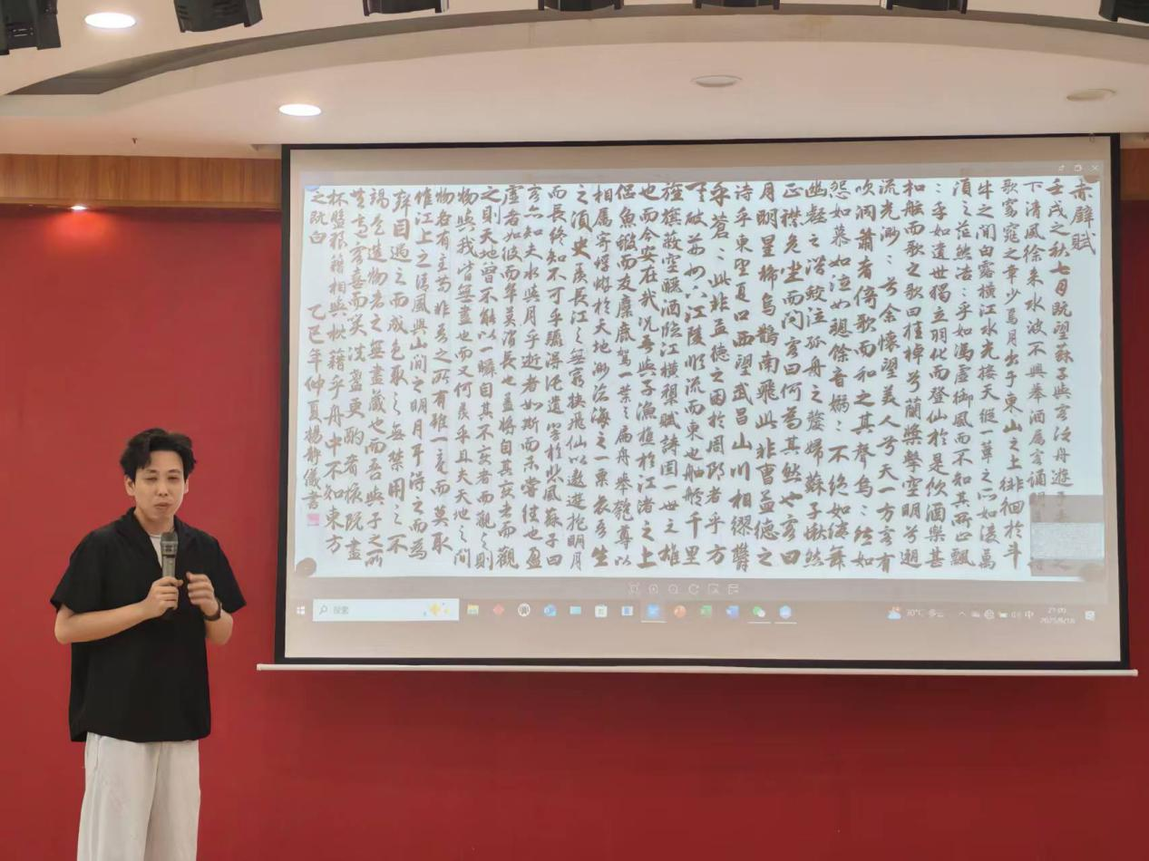 陈海航在致辞中谈到,书画协会1999年由周堪坚员工创办,在协会历届负责人与成员的共同努力下,在员工们的大力支持与指导下,得以传承至今,也成为员工沟通、引导在校生的良好平台。衷心感谢员工们和公司相关部门领导对书画协会的高度重视和帮助指导。希望协会的同学们坚持努力学习,传承中华优秀传统文化,为建设高水平应用型大学贡献力量。