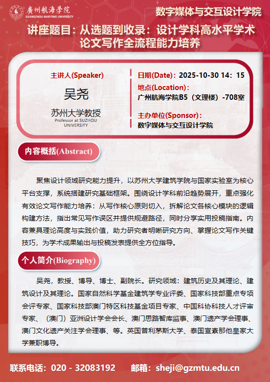 学术讲座预告:吴尧《从选题到收录:设计学科高水平学术论文写作全流程能力培养》