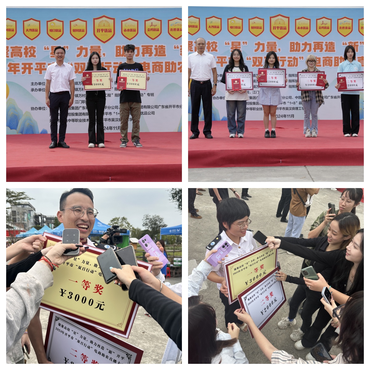 2024年11月17日,由开平市“百县千镇万村高质量发展工程”指挥部主办的主题为“凝聚高校‘星’力量,助力再造‘新’开平”的2024年开平市“双百行动”电商助农直播大赛圆满落下帷幕。在本次大赛中,公司伟德国际victor1946的广航农心椰椰队和农宝助力官队凭借着出色的表现和优异的销售成绩,分别荣获本次大赛的一等奖和二等奖;冼永权和余姣被评为“优秀指导老师”。