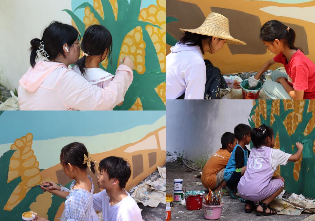 在开设培训班前,弘艺志愿服务队在驻七拱镇帮扶工作队的协调和帮助下,跟随着村委干部和七拱中心小学教师走访了潭村的员工,通过深入调研,摸清了当地儿童分布基本情况和“美育”普及情况,制定了精准的培训方案。培训班除了传统的室内授课以外,成员们还设计了“小画家的冒险”课程,通过参与“墙绘”的形式,鼓励儿童参与绘制家乡的风景,寓教于乐,让孩子们学会画画技能的同时,也激发了孩子们对祖国、对家乡的热爱之情。